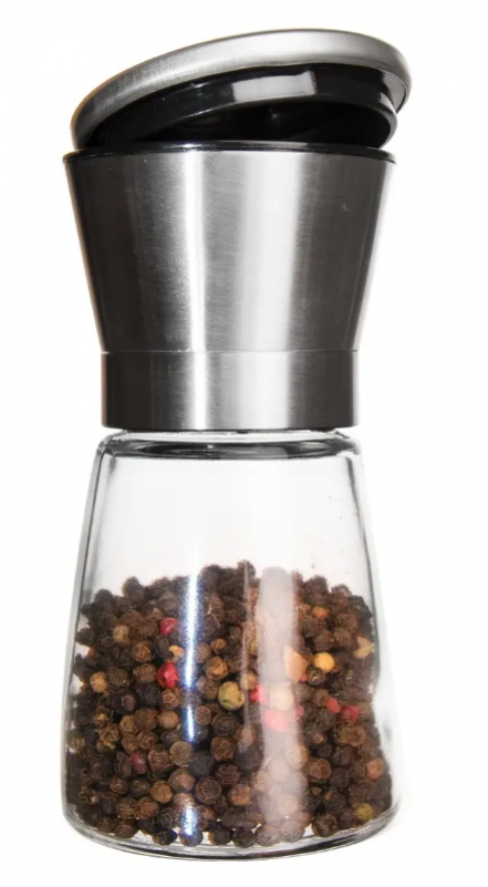Transparentná sklenená nádoba umožňuje kontrolovať množstvo korenia a jednoduché dopĺňanie. Kompaktná veľkosť zaručuje pohodlné držanie v ruke a mlynček sa hodí nielen do kuchyne, ale aj priamo na jedálenský stôl.