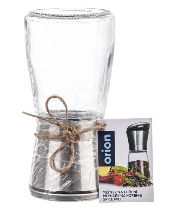 Kvalitný mlynček na korenie a soľ Orion zo skla a nerezu s keramickým mechanizmom. Nastaviteľná hrubosť mletia a elegantný dizajn. Ideálny do každej kuchyne.