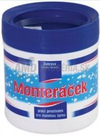 MONTERÁČEK NA MASTNOTU A ŠPINU 500 GOsvedčený pastovitý prací prostriedok pre pranie silne znečisteného textiluÚčinne rozpúšťa a odstraňuje mastnú špinu z tkanín už pri teplote do 60 ° C.Bez vývarky vyperie látky znečistené tukmi a olejmi - montérky, pracovné plášte, utierky apod i pre použitie v práčkach.Dávkovanie:40 až 60 g na 10 litrov vody (polievková lyžica = cca 25 g)Zloženie:Obsahuje viac ako 30% mazľavého mydla, menej ako 10% fosfátov, tenzidov, tetranátrium soli EDTA.