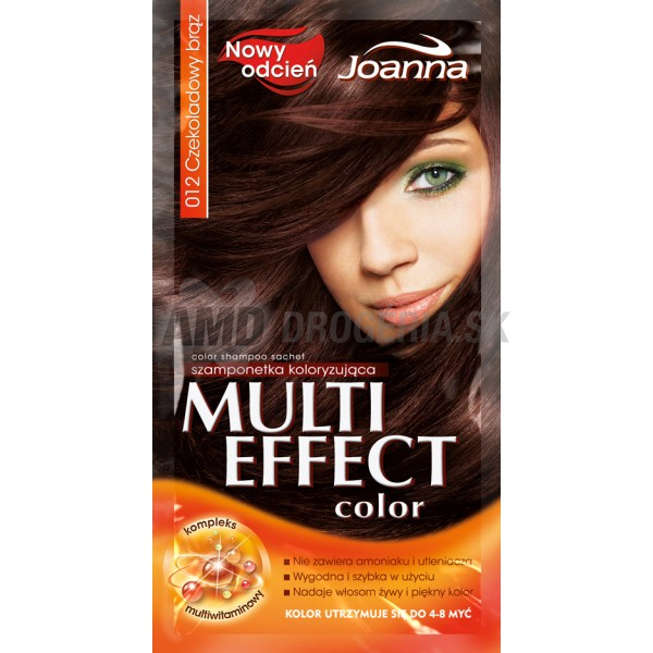 MULTI EFFECT COLOR- 12Séria farbiacich šampónov MULTI COLOR effect je určená na rýchle a jednoduché dosiahnutie žiarivých farebných odtieňov. Jemné zloženie preparátu neobsahuje amoniak ani peroxid vodíka, preto je k vlasom veľmi šetrný.Navyše multivitamínový komplex vlasy hydratuje a vyživuje. Po použití šampónu získajú vlasy peknú a živú farbu, ktorá vydrží 4 – 8 umytí.