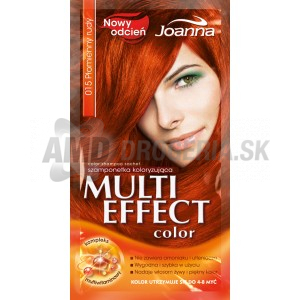MULTI EFFECT COLOR- 15Séria farbiacich šampónov MULTI COLOR effect je určená na rýchle a jednoduché dosiahnutie žiarivých farebných odtieňov. Jemné zloženie preparátu neobsahuje amoniak ani peroxid vodíka, preto je k vlasom veľmi šetrný.Navyše multivitamínový komplex vlasy hydratuje a vyživuje. Po použití šampónu získajú vlasy peknú a živú farbu, ktorá vydrží 4 – 8 umytí.