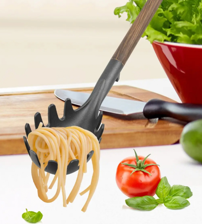Praktická naberačka na špagety s otvormi je ideálnym pomocníkom pri varení a servírovaní cestovín. Špeciálny tvar umožňuje jednoduché naberanie špagiet či iných cestovín, pričom otvory pomáhajú odtiecť prebytočnej vode.