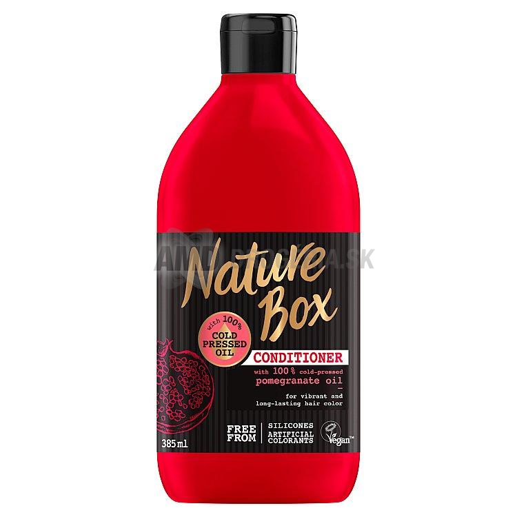Pre zachovanie farby! Nature Box kondicionér so 100% za studena lisovaným olejom z granátového jablka, známym pre obsah vzácnych vitamínov a antioxidantov. Pre dlhotrvajúce a žiarivé farby vlasov, až po dobu 12 týždňov*. *v kombinácii so šampónom Nature Box granátové jablko.