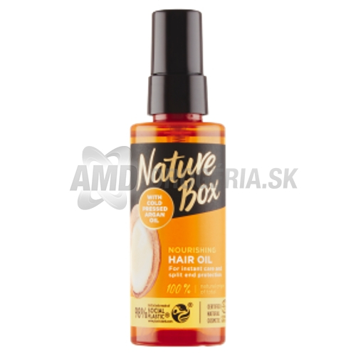Nature Box vyživujúci olej na vlasy s arganovým olejom lisovaným za studena známym pre obsah cenných vitamínov a antioxidantov. Vegánskej zloženie s obsahom 100% ingrediencií prírodného pôvodu (vrátane vody) dodá vašim vlasom potrebnú hydratáciu.