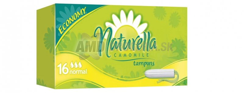 Naturella tampóny Normal 16ksTampóny Naturella obsahujú prírodné vlákna a výťažky z harmančeka a majú tiež jemnú rumančekovú vôňu.
