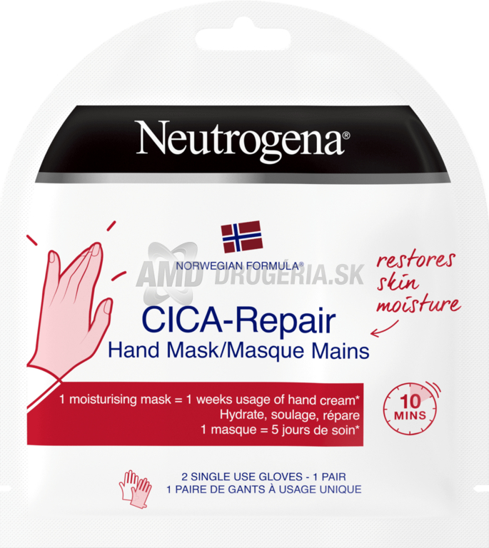 Regeneračná maska na ruky Cica Repair od Neutrogena je ideálna na suché a namáhané ruky. Koncentrované zloženie masky chráni pokožku a robí ju viditeľne hladšou a jemnejšou. Maska pôsobí na pokožku rúk ako ošetrujúci, regeneračný zábal, ktorý už po prvom použití zjemní a upokojí citlivú pokožku rúk. Zloženie s obsahom vitamínu E, bambuckým maslom a extraktom z ovsa a ovseným olejom. Pre jemnú a hebkú pokožku rúk je tu regeneračná maska na ruky Neutrogena Cica Repair!