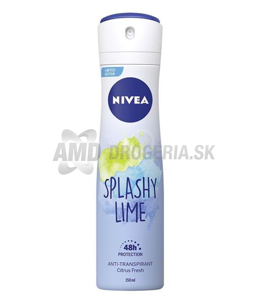 Dámsky deodorant Splashy Lime účinne bojuje proti potu a zanecháva dlhodobý pocit sviežosti. Zároveň zanecháva suché podpazušie. Nezanecháva na čiernom oblečení biele stopy. Neutralizuje zápach. Bez farbív a alkoholu. P