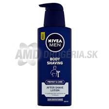 Telové mlieko po holení ** Nivea Men Protect & Care Body Shaving **. Telové mlieko po holení Nivea Men Protect & Care Body Shaving s aloe vera a provitamínom B5. Šetrne stará o pokožku po holení a dokonale ju chráni pred podráždením. Pokožku vyživuje a hĺbkovo hydratuje a zabraňuje strate vlhkosti.