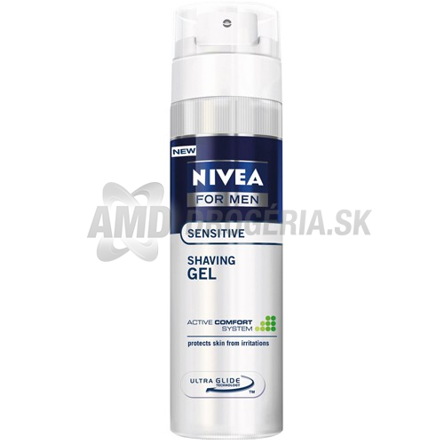NIVEA GÉL NA HOLENIE SENSITIVE 200 MLŠetrné holenie pre citlivú pleť. Pre mužov, ktorí chcú bojovať proti podráždeniu, začervenaniu a páleniu pokožky po holení.Aktívne látky:Ultra Glide technológieharmančekvitamín EÚčinky:presné, hladké a pohodlné holeniejednoduchý a efektívny sklz strojčekaprevencia podráždenia a drobných poraneníVýsledky:upokojená, hladká a zdravšia pleť bez podráždenia.