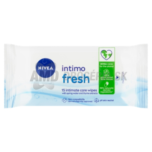 Vlhčené obrúsky NIVEA Intimo sú dokonalým nástrojom na každodennú starostlivosť o intímne partie. Obrúsky obsahujú osviežujúce výťažky z tymianu a pramenitú vodu a nenarušujú prirodzené pH ženských intímnych partií. Zloženie obrúskov NIVEA je z 98 % prírodného pôvodu a obrúsky sú vyrobené zo 100 % prírodného materiálu, vďaka čomu pomáhajú šetriť aj našu planétu. Po použití vám obrúsky poskytnú príjemný pocit upokojenia, čistoty a sviežosti. Pohodlné fóliové balenie s praktickým lepiacim uzáverom zabezpečuje opakované otváranie a zatváranie.