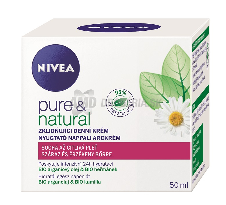 Nivea Visage Pure & Natural Upokojujúci denný krém, na suchú až citlivú pleť, pre dokonalú výživnú starostlivosť, 50ml