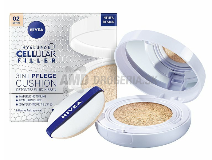 Nivea Hyaluron Cellular Filler Cushion je 3 v 1 tónovací krém v hubke, ktorý ponúka niekoľko výhod pre pleť.
