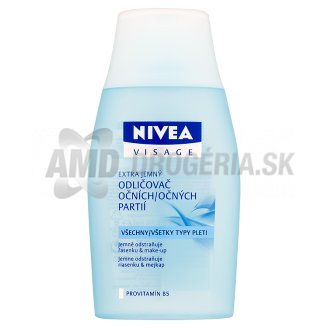 NIVEA ODLIČOVAČ OČÍ 125 MLNIVEA VISAGE Extra jemný odličovač očných partií - šetrne a dôkladne odstráni make-up z citlivých očných partií. Vďaka jemnému nemastnému zloženiu s obsahom provitamínu B5 okamžite umožňuje nové nalíčenie.Vaša pleť v citlivom očnom okolí bude dokonale čistá a hydratovaná. Vhodný pre užívateľky kontaktných šošoviek.