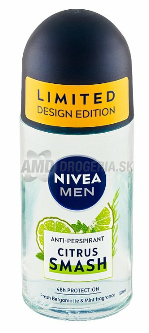 Nivea Men Citrus Smash je guľôčkový antiperspirant s príjemnou citrusovou vôňou. Vďaka svojim účinným antiperspiračným vlastnostiam poskytuje dlhotrvajúcu ochranu pred potom a nepríjemným zápachom. Jeho praktický guľôčkový aplikátor umožňuje ľahké a presné použitie, čo z neho robí ideálne pre každodenné použitie. Balenie obsahuje 50 ml produktu, čo je vhodné pre dlhodobé používanie.