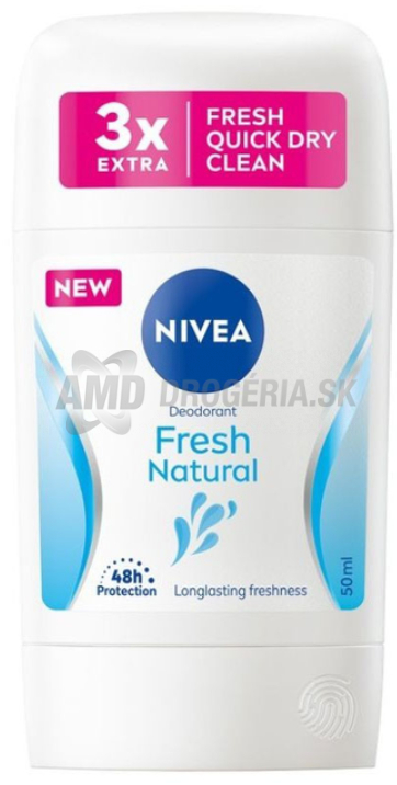 NIVEA STICK FRESH 40 MLFRESH NATURAL s morskými minerálmi zaistí účinnú ochranu a pocit sviežosti po celých 24 hodín. Jeho zloženie je optimálnou kombináciou spoľahlivej ochrany proti poteniu a jemnej starostlivosti NIVEA.24-hodinová ochrana.S ľahkou sviežou vôňou.Bez alkoholu, farbív a konzervačných látok.