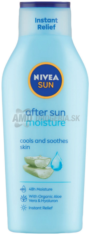 Hydratačné mlieko po opaľovaní, ktoré obsahuje aloe vera, pokožku intenzívne chladí a upokojuje.Mlieko obohatené o vitamín E, ktorý chráni pokožku pred predčasným starnutím vplyvom slnečného žiarenia.