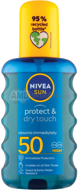 Nivea Sun Protect & Dry Touch Invisible Spray SPF50 vodeodolná opaľovací prípravok na telo na všetky typy pleti 200 ml.