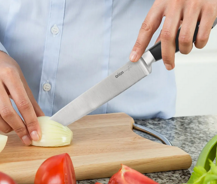 Kuchynský nôž z kolekcie Master je spoľahlivý pomocník pre profesionálnych kuchárov aj náročných domácich gurmánov. Vďaka dlhej a robustnej čepeli je ideálny na presné krájanie väčších kusov mäsa, zeleniny či iných surovín.