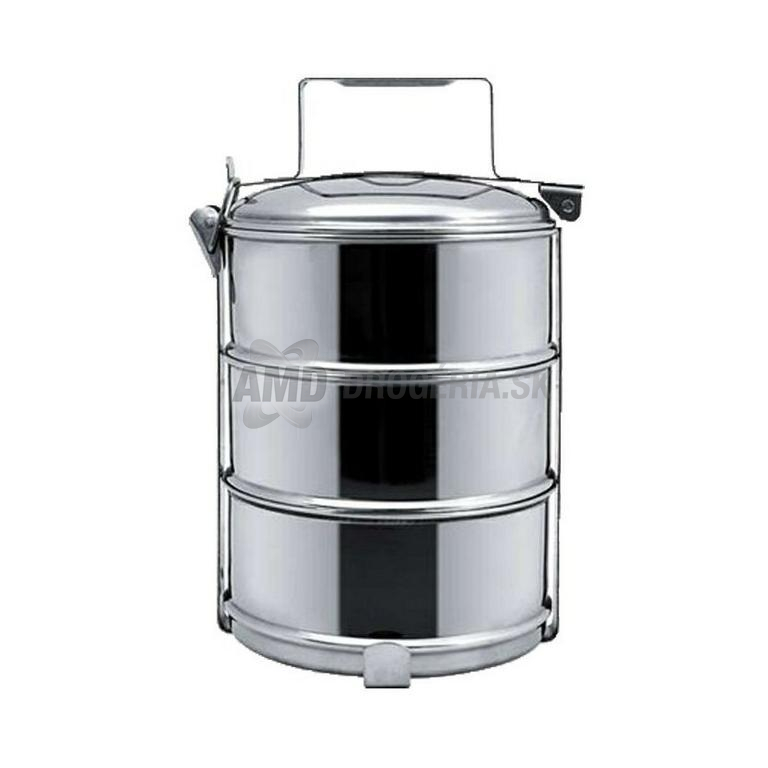 nerezový obedár, 3-dielny, priemer 16 cm, výška jedného dielu 6,7 cm, celková výška 26 cm