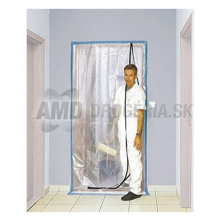 Zakrývacia fólia do dverí z polyethylénu nízkej hustoty, so zipsom uzatvárateľným priechodom v tvare L.