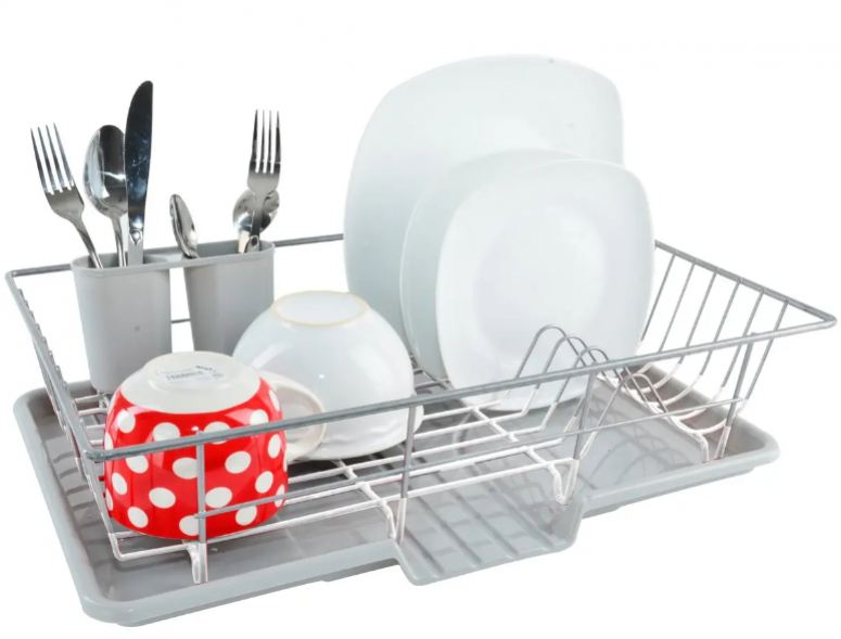 Odkvapkávač s drôtovou konštrukciou a prídavnou táckou UH s rozmermi 46,5x31x13 cm je praktickým riešením pre uskladnenie riadu. Tento odkvapkávač je vybavený konštrukciou na odkladanie tanierov a príborov, a navyše obsahuje vyberateľný odkvapkávač na príbory. Drôtová časť, ktorá je najviac vystavená vlhkosti, má povrchovú úpravu, ktorá zabraňuje hrdzaveniu. Materiál z drôtu s povrchovou úpravou a plastu zabezpečuje ľahkú údržbu. Tento odkvapkávač je praktický a efektívny doplnok do každej kuchyne.