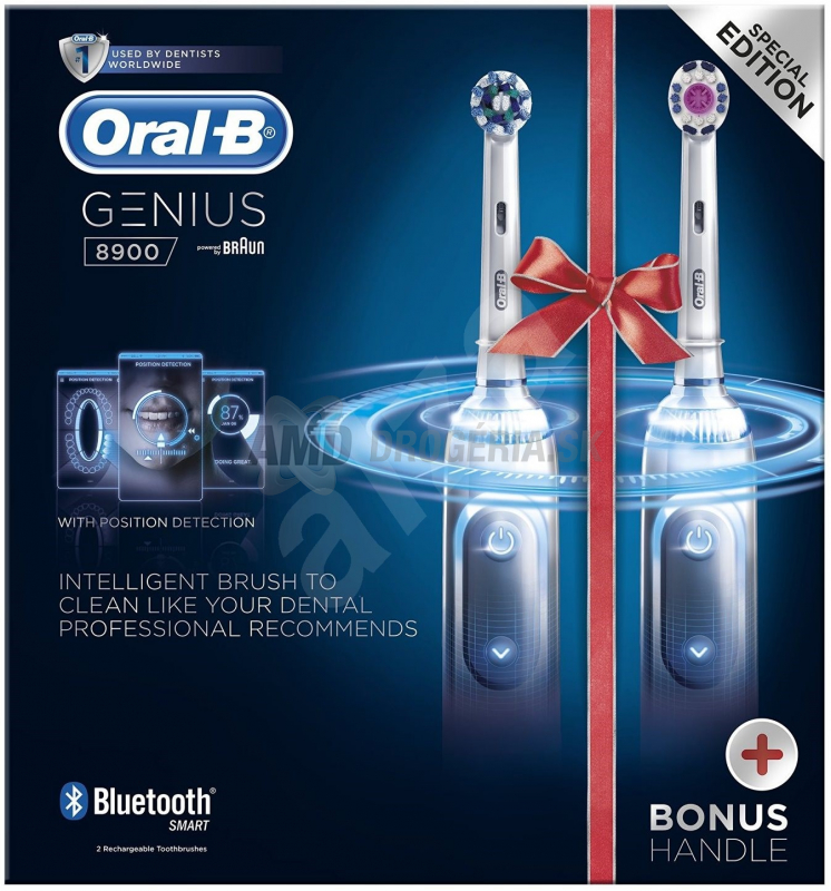Hľadáte elektrickú kefku, ktorá by bola riešením pre celú rodinu? Tak v tom prípade ste u Braun Oral-B Genius 8900 úplne správne. Balenie s dvoma kefkovými telami, tromi hlavicami, držiakom na mobilný telefón je spoľahlivou výbavou. Inovovaná elektrická kefka so senzorom tlaku a možnosťou prepojenia s aplikáciou vo Vašom mobilnom telefóne, poteší aj osoby so záľubou v moderných technológiách.