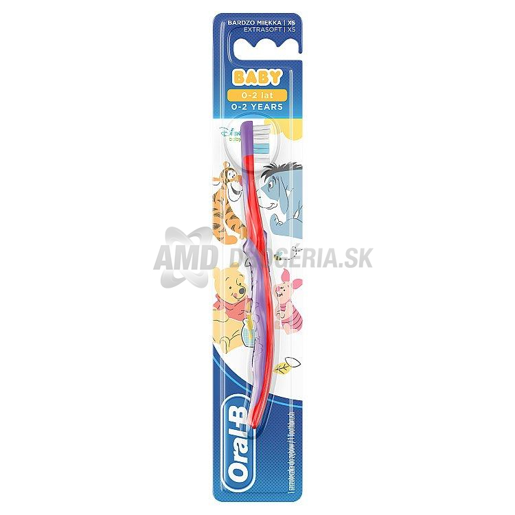 Zubná kefka Oral-B Baby je prvá zubná kefka pre vaše dieťa. Zubní lekári odporúčajú, aby rodičia začali čistiť detské zuby s príchodom prvého detského zubu. Má najmäkšie štetinky a čistiaca hlavica kefky pokrýva veľké povrchy a jemne masíruje ďasná. Ergonomická rukoväť je navrhnutá pre ruku rodiča, má protišmykové uchytenie a opierku na palec pre zvýšenú kontrolu. Ideálne pre deti do 2 rokov.