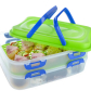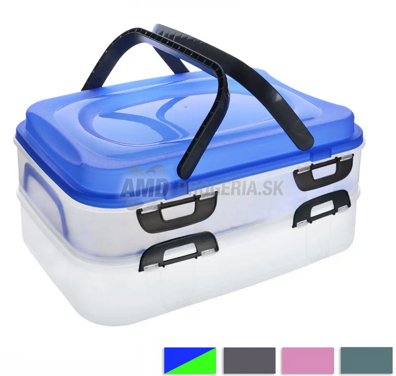Dvojposchodový piknikový box s uchami je ideálny na prepravu potravín, či už ide o cukrovinky, chlebíčky, jednohubky alebo iné občerstvenie. Box má praktické rozmery 40×30×18 cm a je vybavený uzatváraním na klipy a dvoma ušami pre pohodlné nosenie. Súčasťou je aj plastová mriežka s držadlami, ktorá uľahčuje vyberanie obsahu.