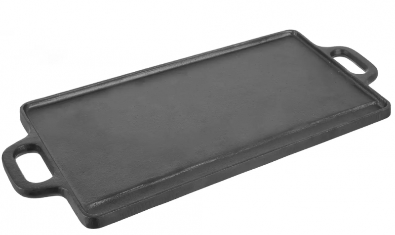 Obojstranná doska na grilovanie s typickou rebrovanou štruktúrou na jednej strane a hladkou stranou na druhej je vyrobená z odolnej liatiny.