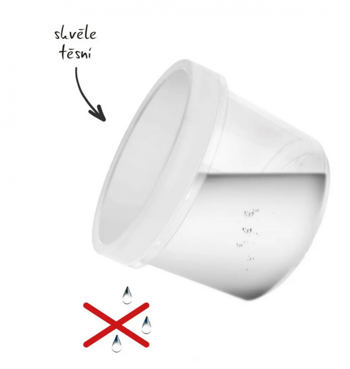 Dóza je vybavená plastovým viečkom so závitom a silikónovým tesnením, ktoré zabraňujú rozliatiu alebo vysypaniu obsahu. Môže sa používať v chladničke, mrazničke a mikrovlnnej rúre (po odstránení viečka), a je vhodná na umývanie v umývačke riadu.