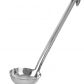 Nerezová naberačka s dĺžkou 34 cm je ideálnym nástrojom na servírovanie tekutých pokrmov, ako sú guláš, sviečková, slepačí vývar či cesnačka. S objemom 160 ml a praktickou dlhšou rukoväťou vám uľahčí prácu v kuchyni.