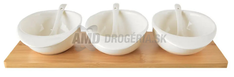 ORION SERVÍROVACIE MISKY PORCELÁNOVÉ A LYŽIČKY + BAMBUSOVÁ TÁCKA