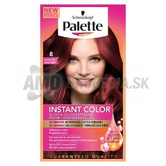 PALETTE INSTANT COLOR s receptúrou Formula C + pre žiarivé farby a trblietavý lesk!- Vydrží 6-8 umytí- Na jedno použitie - ľahko a rýchlo!- Pre dlhšie vlasy použite ďalšie balíček- Neobsahuje peroxid vodíka ani amoniakINSTANT COLOR8 Granátové červený