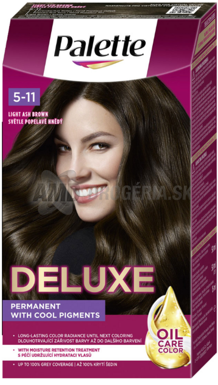 Palette Deluxe farba na vlasy Svetlo popolovo hnedá 5-11 prináša dlhotrvajúcu žiarivú farbu a starostlivosť o vlasy v jednom. Tento produkt je ideálny pre tých, ktorí túžia po chladnej, prirodzene vyzerajúcej farbe s intenzívnym leskom.