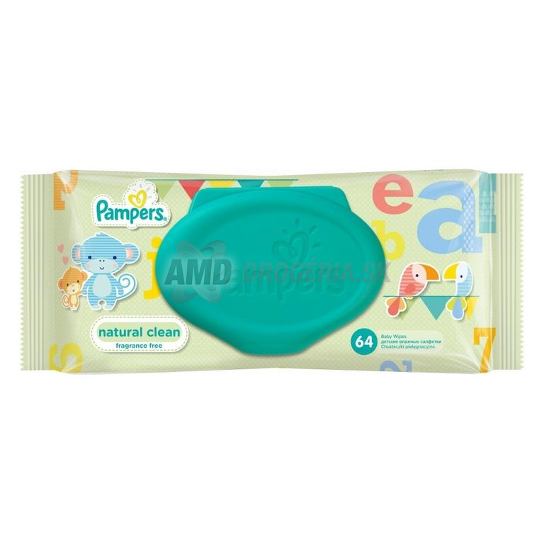 PAMPERS Natural Clean S VIEČKOM (64ks) – čistiace obrúsky. {Color: # e42a8e}