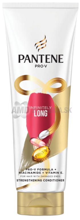 Kondicionér Pantene Pro-V Infinite Long je určený pre stredne dlhé až dlhé vlasy a sľubuje podporu a zlepšenie ich zdravia. Tento kondicionér obsahuje niacínamid a vitamín E, ktoré majú za cieľ vyživovať a obnovovať poškodené vlasy od korienok až po končeky a zároveň zabraňovať rozštiepeniu končekov. Jeho rýchly účinok by mal eliminovať známky poškodenia a dodatočného dlhého vlasu jemnosť a zdravý lesk.