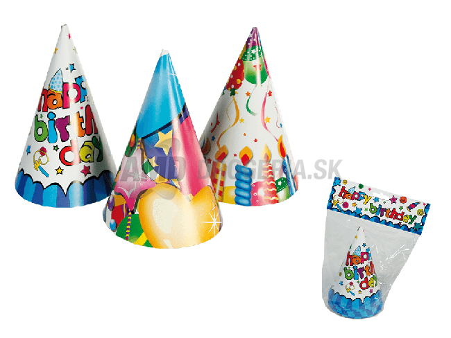 PAPIEROVÉ KLOBÚKY HAPPY BIRTHDAY 15 CM, 6 KS