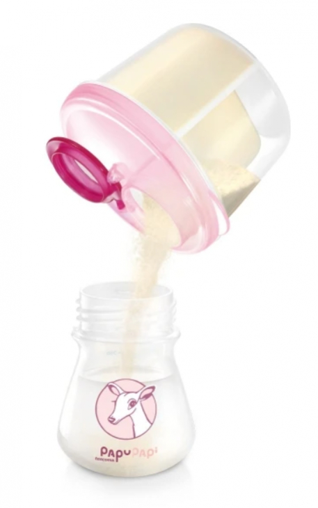 Dóza na sušené mlieko PAPU PAPI v ružovej farbe je užitočným kontejnerom na uloženie až troch porcií sušeného mlieka a ľahkú prípravu detských pokrmov, najmä pri cestovaní. Táto dóza je vyrobená pomocou unikátnej technológie nanoCARE™ az prvotriedneho plastového materiálu, ktorý sa používa v oblasti zdravotníctva. Vďaka tomu je antibakteriálna, odstraňuje znečistenie a nepohlcuje pachy.