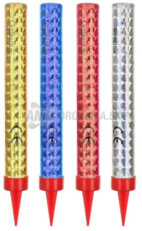 Jedno balenie obsahuje 4 kusy fontán v rôznych farbách – červená, zelená, žltá a modrá. Každá fontána má dĺžku 12 cm a efekt trvá približne 40 sekúnd. Výrobok je určený výhradne na vonkajšie použitie.