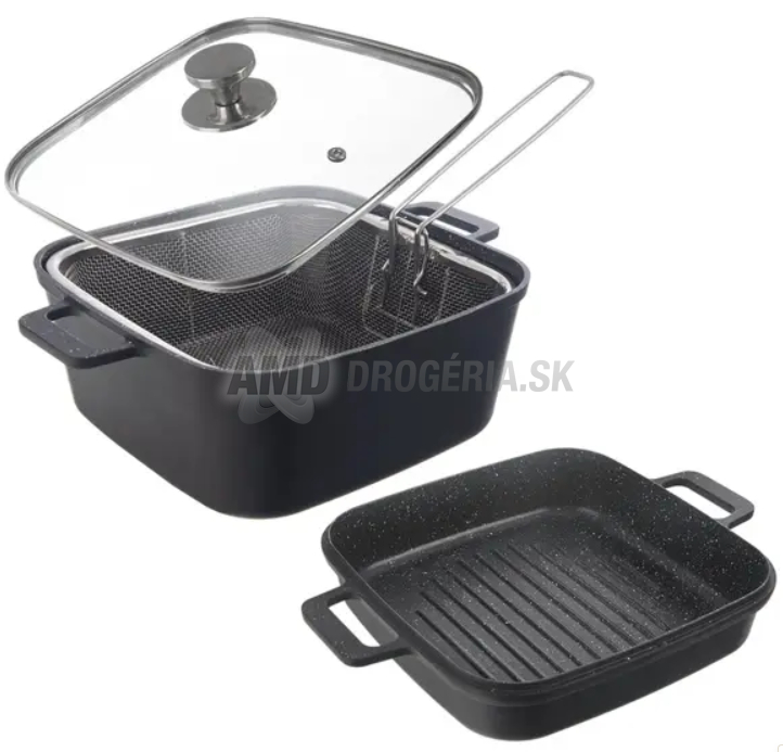 Táto praktická multifunkčná súprava pekáčov ponúka maximálnu flexibilitu pri varení, pečení aj vyprážaní. Obsahuje vysoký pekáč, nízky pekáč, sklenenú pokrievku a antikoro fritovací košík s odnímateľnou rukoväťou. Jednotlivé diely možno kombinovať alebo používať samostatne podľa aktuálnej potreby.