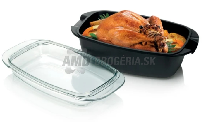 Jedným z výnimočných rysov tohto pekáča je ohňovzdorný sklenený poklop, ktorý je súčasťou sady. Tento poklop môžete použiť aj ako samostatnú nádobu na pečenie, čo zvyšuje jeho univerzálnosť. Pekáč s poklopom PREMIUM je vhodný pre všetky typy rúr okrem mikrovlnnej rúry, môže byť tiež použitý na plynové, elektrické a sklokeramické sporáky.