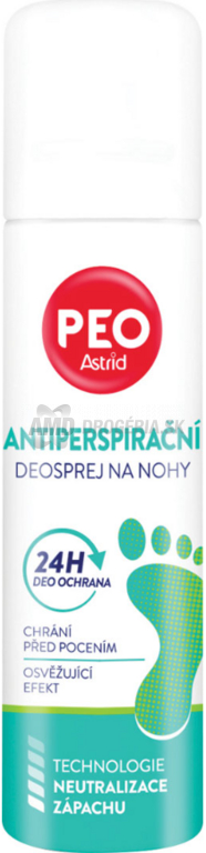 - antiperspirant spray na nohy PEO od značky Astrid prináša cielenú starostlivosť o pokožku nôh s týmto rýchloschnúcim sprejom