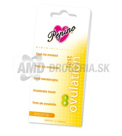 Ovulačný test Pepino Dipstrip. Prúžkový test rozpoznáva nárast hladiny LH (Lutenizačného hormónu), ktorý je typickým javom pri začínajúcej ovulácii.