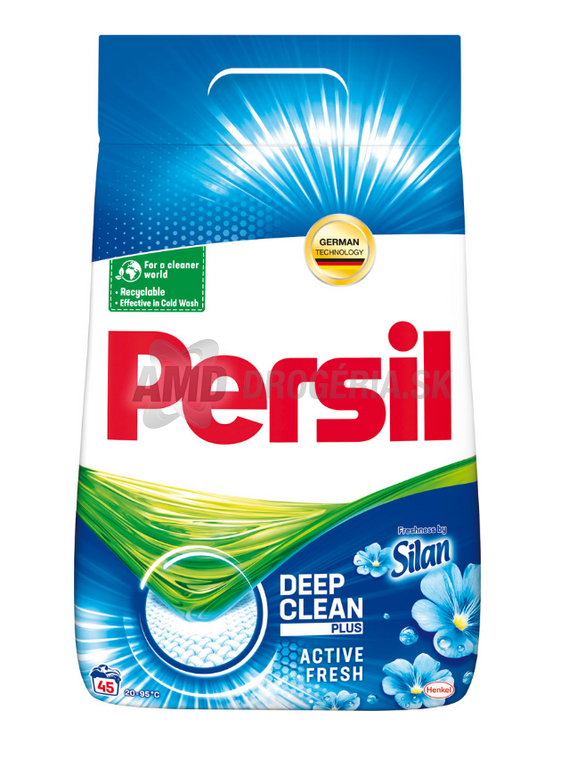 Príjemná a dlhotrvajúcu sviežosť vášho oblečenia s každým praním! Prací prášok Persil Deep Clean Plus Active Fresh Silan zaistí skvelé výsledky pracieho procesu už pri nízkych teplotách. S účinnou technológiou Deep Clean Plus preniká hlboko do vlákien a odstraňuje aj tie najodolnejšie škvrny. Zároveň zaistí brilantnú žiarivosť bielizne a ochráni pred šedivením aj po opakovanom praní. Vďaka optimálnej ochrane vlákien zabráni natiahnutiu a vytváraniu žmolkov. Prací prostriedok v prášku Persil Color Deep Clean Plus Active Fresh Silan pre dokonalú a dlhotrvajúcu čistotu a vôňu vašej bielizne aj dlho po vypraní! Udržateľné balenie - prací prášok Persil je dodávaný v 100 % recyklovateľnom obale.