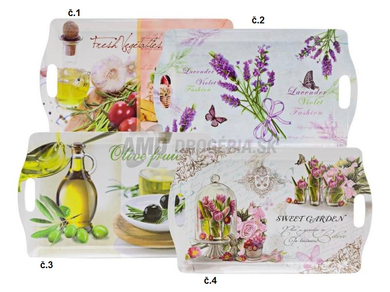 plastový podnos, rozmer 43x27cm, s rôznymi dekormi, nie je určené na priamy styk s potravinam