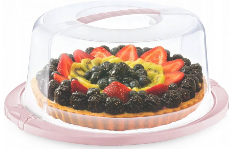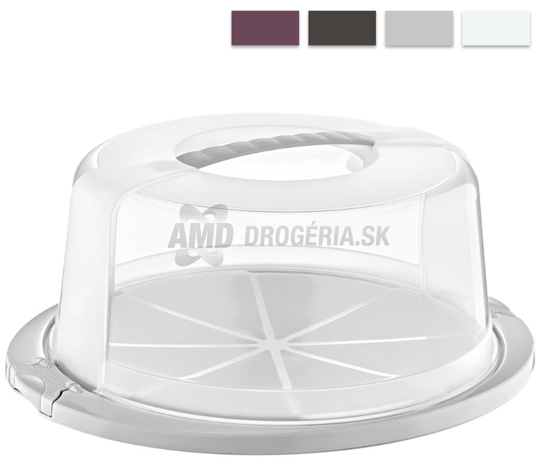 Veko je dostatočne vysoké, vhodné aj na vyššie torty. Celá súprava je ľahká, praktická a jednoducho sa udržiava. Farba podnosu je dodávaná podľa aktuálnych skladových zásob a nie je možné si ju vybrať.