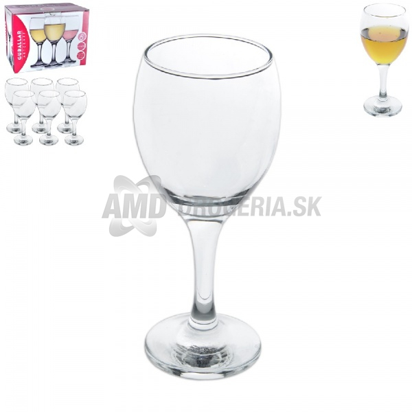 sklenený, objem 245 ml, na stopke, číry, na biele víno, 6 ks sada