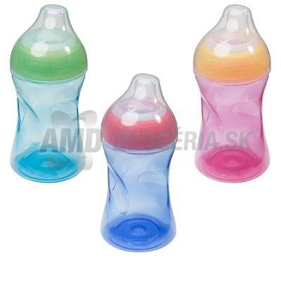 Bol navrhnutý tak, aby sa zabránilo odkvapkávaniu a rozliatiu.No pre začiatok.Vaše dieťa si ani nevšimnete prechodu z fľaše na pitie z hrnčeka, pretože mäkká náustok vyrobený zo silikónu, je veľmi príjemné a pohár dobre padne do ruky dieťaťa.Ochranná krytka zabraňuje poškodeniu a nečistoty na výtoku.