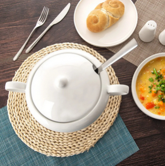 Praktický otvor v pokrievke umožňuje vložiť rovnú naberačku, takže môžete vývar alebo krémovú polievku pohodlne servírovať priamo doprostred stola bez nutnosti pokrievku odkladať.