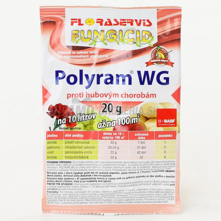 Zemiaky: 20 g Polyram WG na 100 m2, aplikácia podľa potreby v intervaloch 7-14 dní, maximálne 3x počas vegetácie.